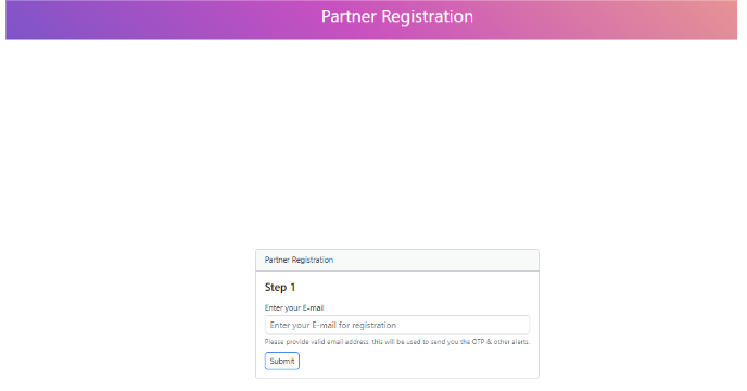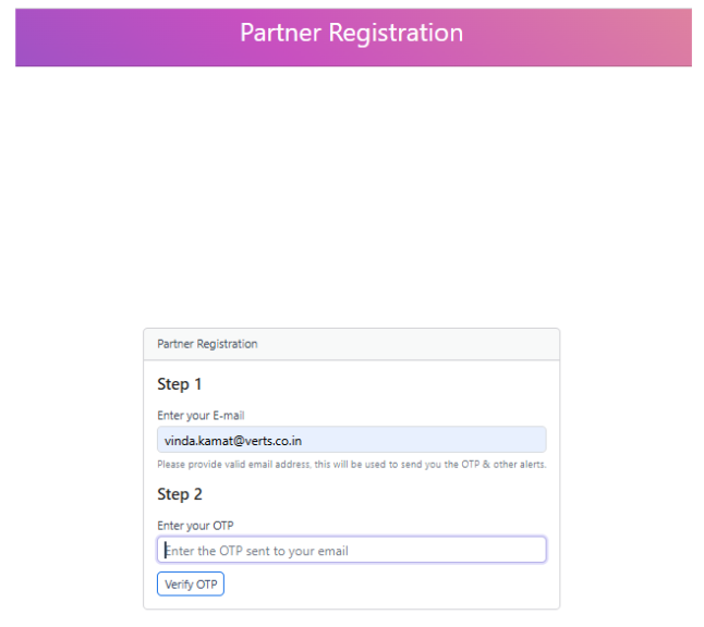 Partner registration form — provide a valid email for token/OTP. -